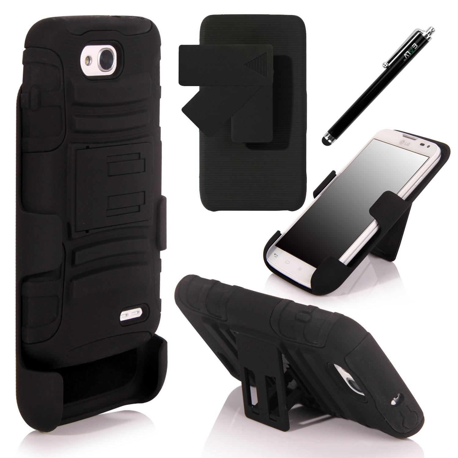 The L90 is a slick phone, and the phone feels much more secure in my hand with this case. 2 piece design, soft rubber inner, plastic outer with some sort of rubberized feel. Sorry, don't plan on dropping the phone, so I can't tell how it protects, but it's a pretty standard design. Kickstand works well, but a minor flaw is that it juts out a little to far when laying flat, so it wobbles a bit if laid on a flat surface to type or whatever. Not a deal breaker though. I selected this model because it has a beltclip (I don't like a phone in my pocket), and it works well. The other minor issue (others have mentioned) is the rubber lip that covers the micro USB charging port; it is a bit stiff, and I need two hands to plug the phone in, but it should less stiff as time goes by. I'd buy again, but if the manufacturer is reading this, try to redesign the kickstand piece so it allows the phone to lay on it's back without wobbling.